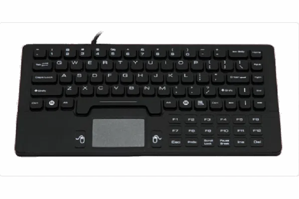 SK309 tastiera industriale in gomma siliconica rigida, 87 tasti con touchpad, e tasti funzione, USB, protezione a IP68, antibatterica e lavabile, per ambienti medicali, alimentari, industriali gravosi.